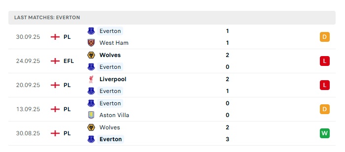 - Phong độ gần đây Everton