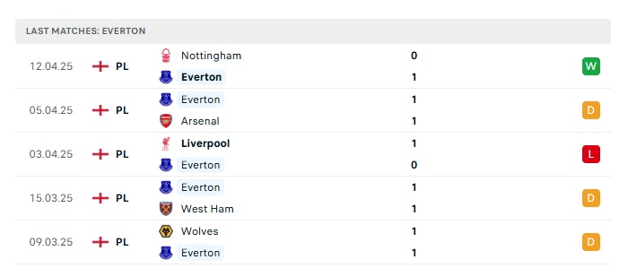 • Phong độ gần đây Everton