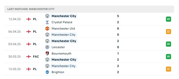 • Phong độ gần đây Man City