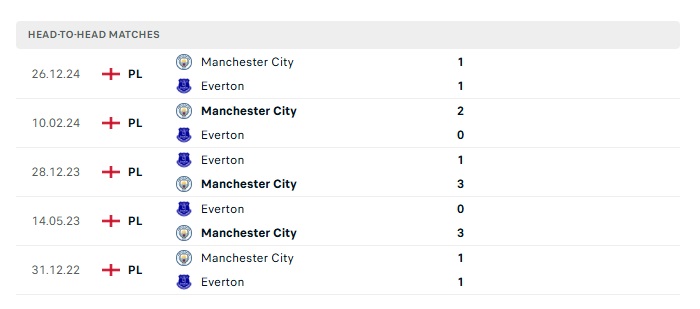 Lịch sử đối đầu Everton vs Man City