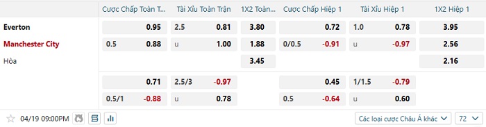 Soi kèo châu Á, kèo Everton vs Man City