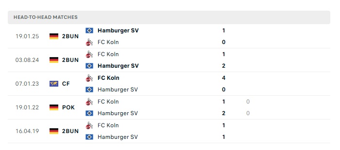 - Kèo tỷ số H2 FC Koln vs Hamburger: 1-0