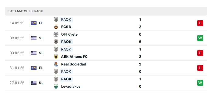 - Phong độ gần đây PAOK
