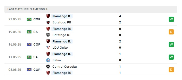 - Phong độ gần đây Flamengo