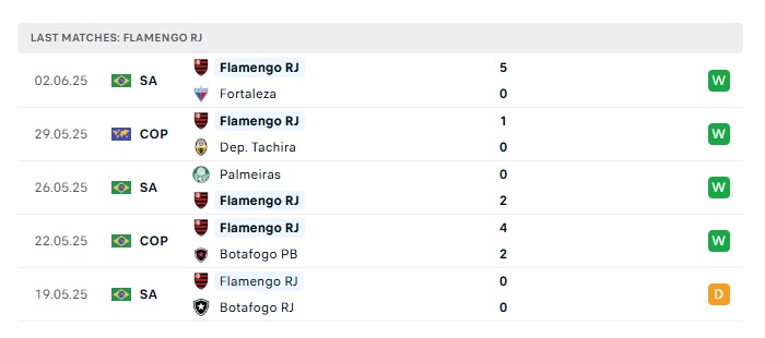 Phong độ gần đây Flamengo vs Esperanse ST