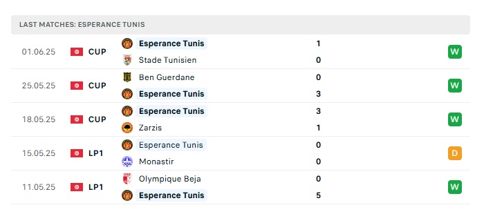 - Phong độ gần đây Esperanse ST