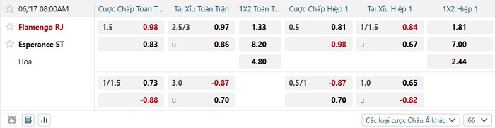 Bảng tỷ lệ kèo bóng đá Flamengo vs Esperanse ST