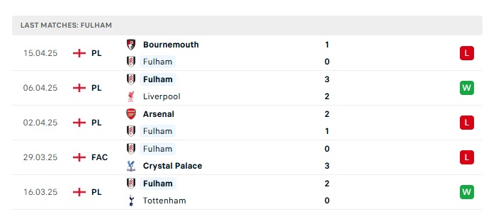 • Phong độ gần đây Fulham