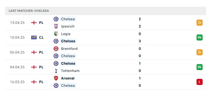• Phong độ gần đây Chelsea