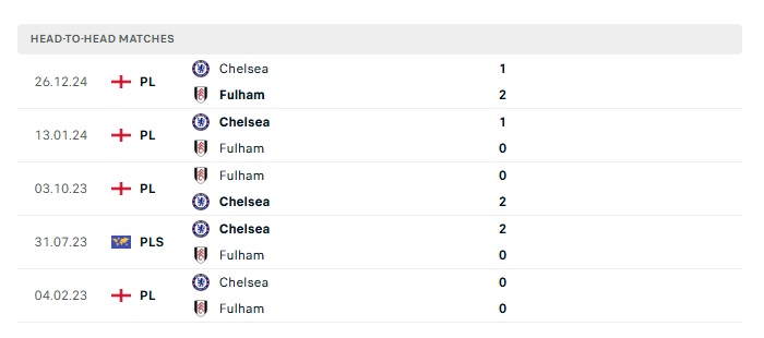 Lịch sử đối đầu Fulham vs Chelsea