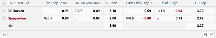 Bảng tỷ lệ kèo nhà cái Hacken vs Djurgardens