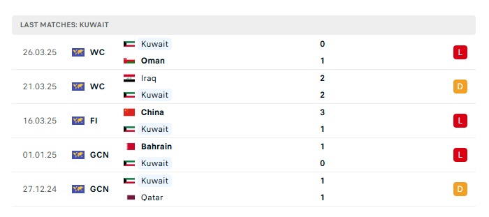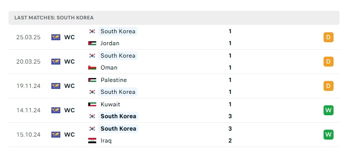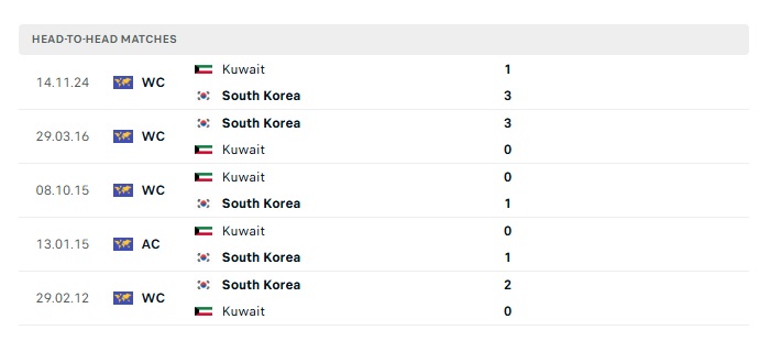 Phong độ gần đây Hàn Quốc vs Kuwait