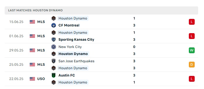Phong độ gần đây Houston Dynamo vs St. Louis City SC