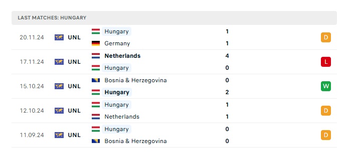 - Phong độ gần đây Hungary