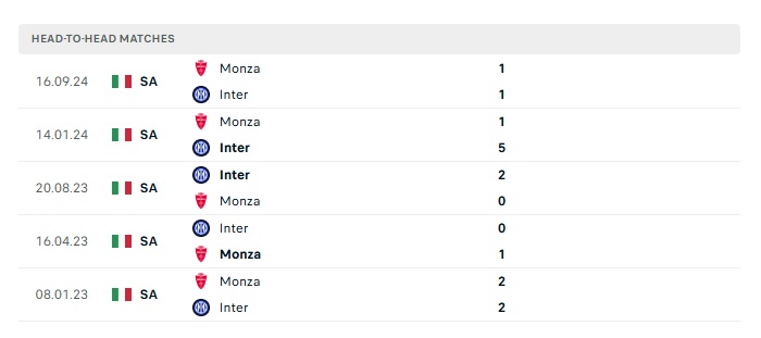Lịch sử đối đầu Inter Milan vs Monza