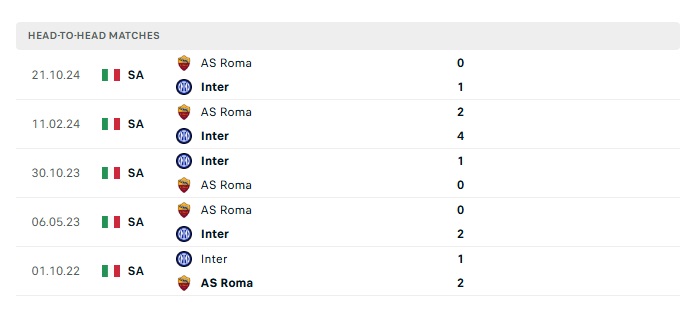 • Kèo tỷ số H2 Inter Milan vs Roma: 1-0