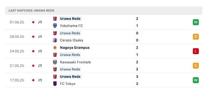 - Phong độ gần đây Urawa Red