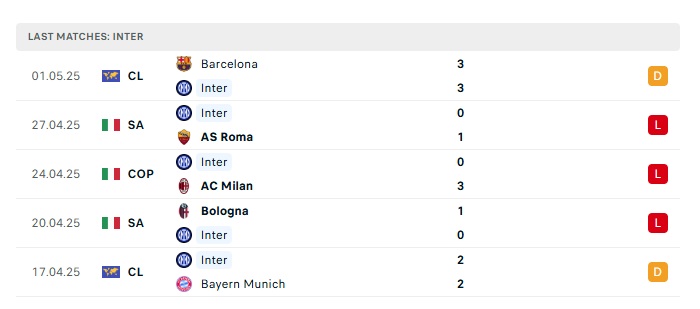 • Phong độ gần đây Inter Milan
