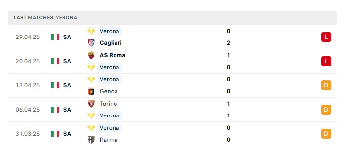 • Phong độ gần đây Verona