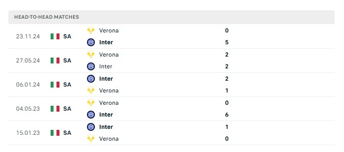 Lịch sử đối đầu Inter Milan vs Verona