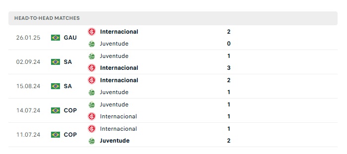 Lịch sử đối đầu Internacional vs Juventude