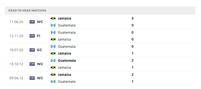 Vừa gặp nhau gần đây trong trận vòng loại World Cup, Guatemala tiếp tục phải đối mặt áp lực cực lớn từ Jamaica. Nên biết rằng trên BXH FIFA, Jamaica đang có mặt ở vị trí thứ 63. Trong khi đó đối thủ của họ là Guatemala lúc này đang có vị trí rất thấp là 106. Như vậy thì chỉ cần chơi đúng sức mình, đội chủ nhà Jamaica chắc chắn sẽ có được 1 chiến thắng trọn vẹn trước đối thủ.