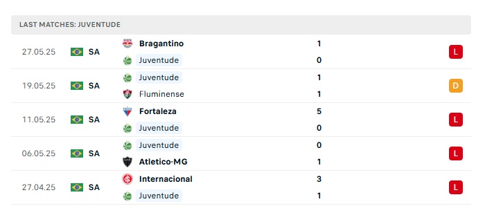 - Phong độ gần đây Juventude