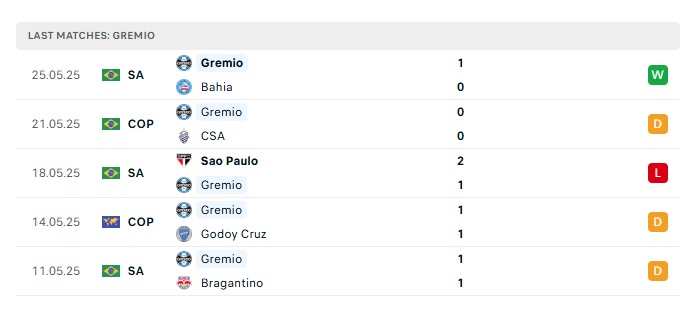 - Phong độ gần đây Gremio