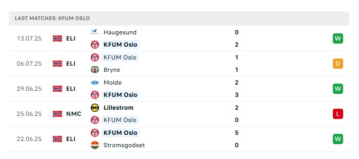 - Phong độ gần đây KFUM Oslo