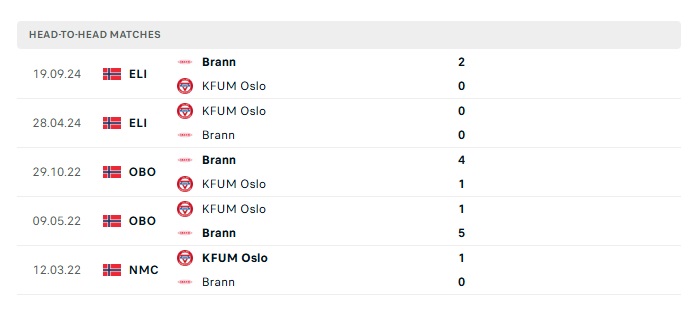 Lịch sử đối đầu KFUM Oslo vs Brann