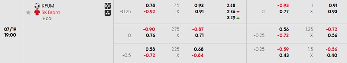Bảng tỷ lệ kèo nhà cái KFUM Oslo vs Brann