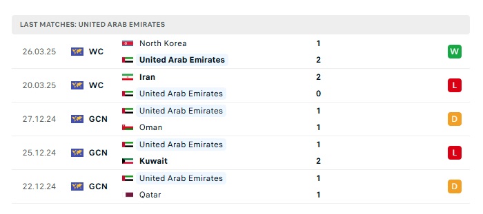 - Phong độ gần đây UAE