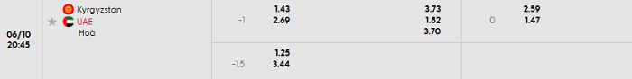 - Kèo tỷ số H1 Kyrgyzstan vs UAE: 0-1