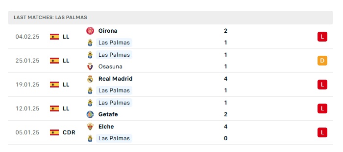 • Phong độ gần đây Las Palmas