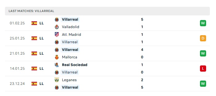 • Phong độ gần đây  Villarreal