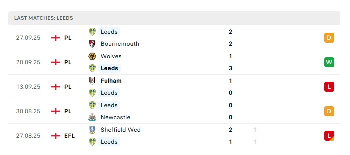 • Phong độ gần đây Leeds Utd