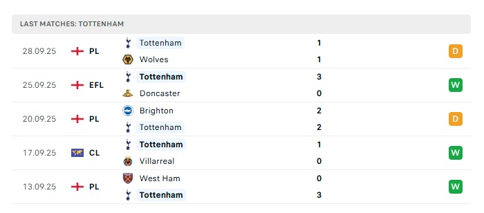 • Phong độ gần đây Tottenham