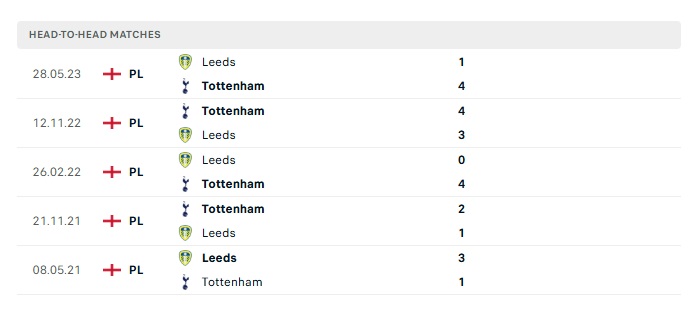 Lịch sử đối đầu Leeds Utd vs Tottenham