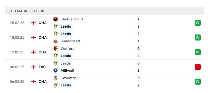 - Phong độ gần đây Leeds Utd