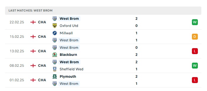 - Phong độ gần đây West Brom