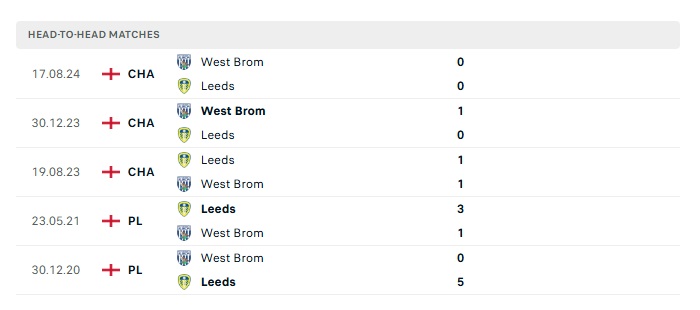 Lịch sử đối đầu Leeds Utd vs West Brom