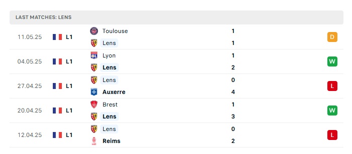• Phong độ gần đây Lens