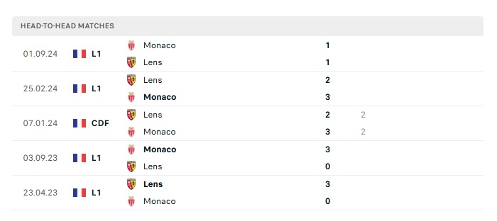 Lịch sử đối đầu Lens vs Monaco
