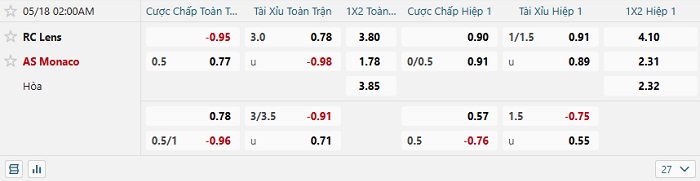 Soi kèo châu Á, kèo Lens vs Monaco
