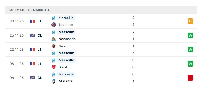- Phong độ gần đây Marseille