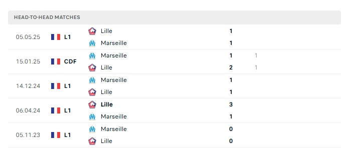 Lịch sử đối đầu Lille vs Marseille