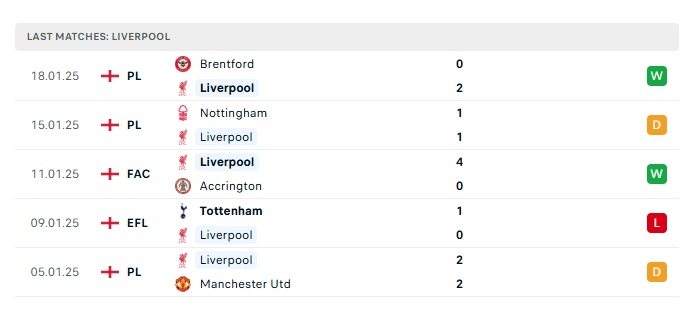 - Phong độ gần đây Liverpool