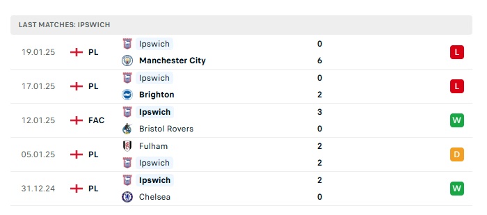 - Phong độ gần đây Ipswich