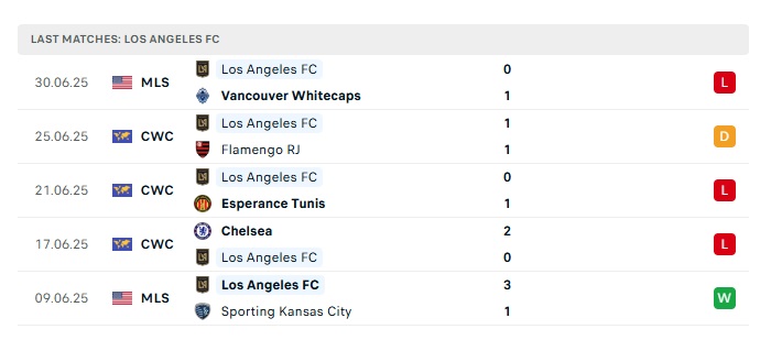 - Phong độ gần đây Los Angeles FC