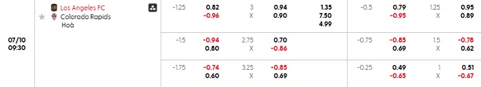Bảng tỷ lệ kèo bóng đá Los Angeles FC vs Colorado Rapids